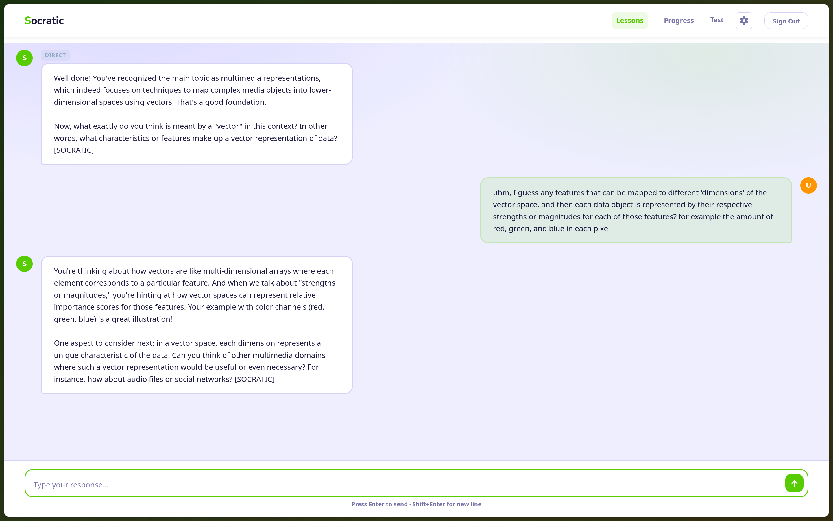 What we actually shipped is closer to: a carefully constrained LLM with a system prompt that forces Socratic behavior. The model is instructed to always respond with one of three tags: [SOCRATIC], [HINT], or [DIRECT]. Socratic is the default, a question that gets the student thinking. Hint gives a nudge without resolving the uncertainty. Direct is reserved for when a student has genuinely struggled and needs a lifeline, controlled by an attempt threshold the teacher can configure â after all, itâd be counter-productive to have students drop use of the tool entirely because it keeps quizzing them on something they just arenât able to figure out.